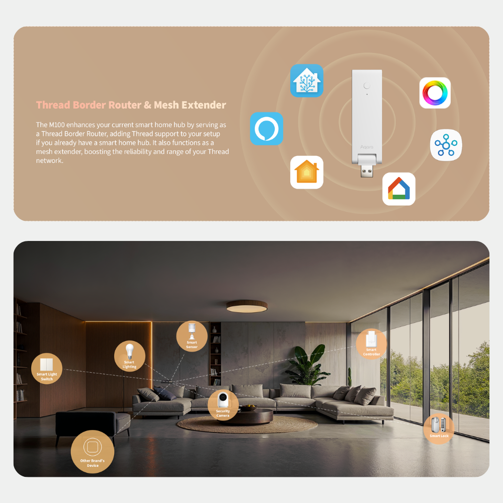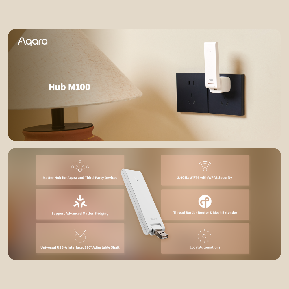 The Aqara Smart Hub M100 is a compact, USB-powered smart home hub that acts as the central brain of your Aqara ecosystem.