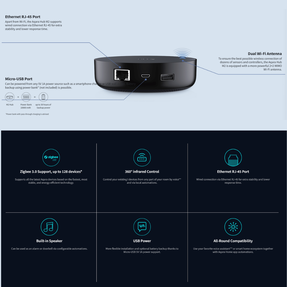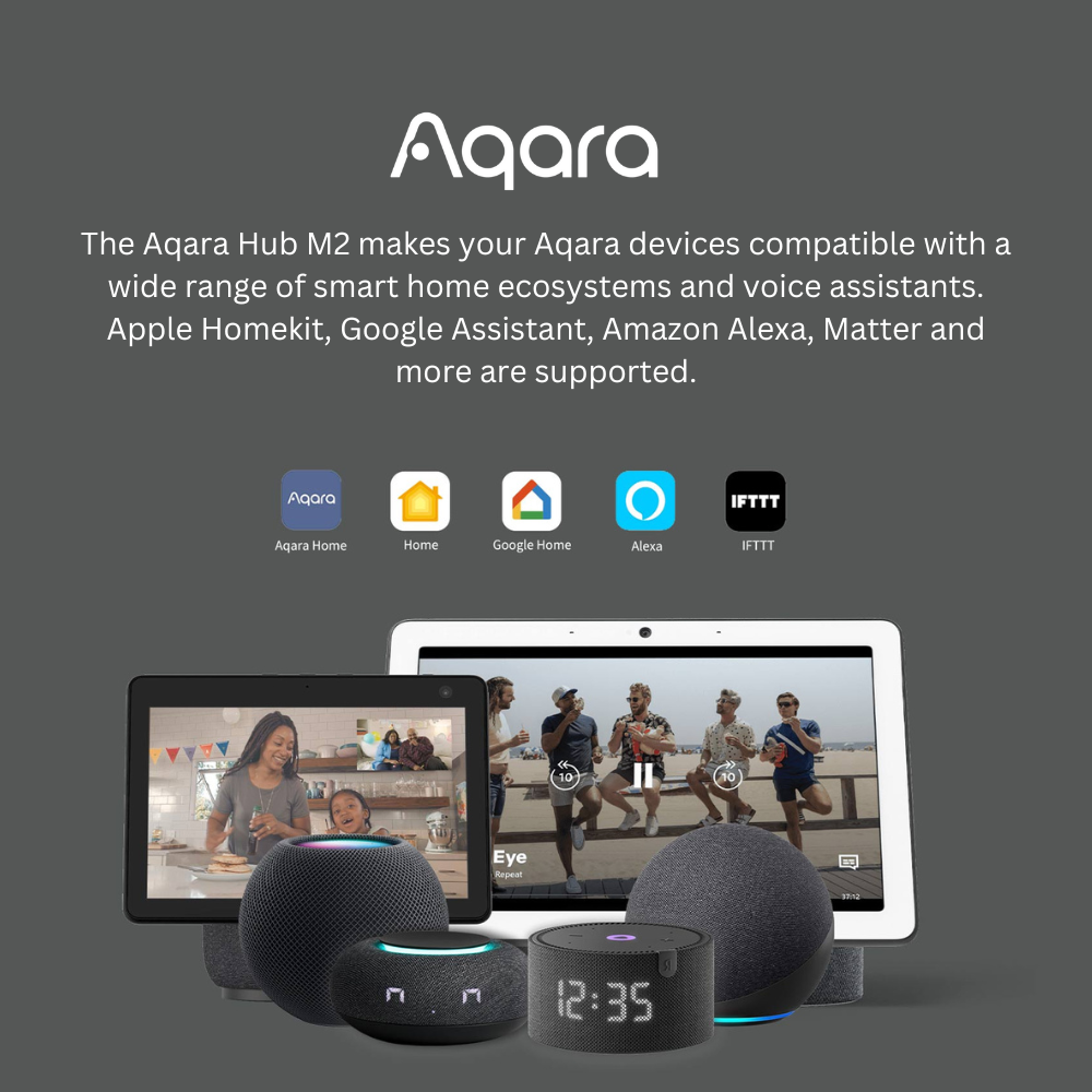 The Aqara Hub M2 is a multi-protocol smart home hub that connects and controls Aqara’s Zigbee-based smart accessories