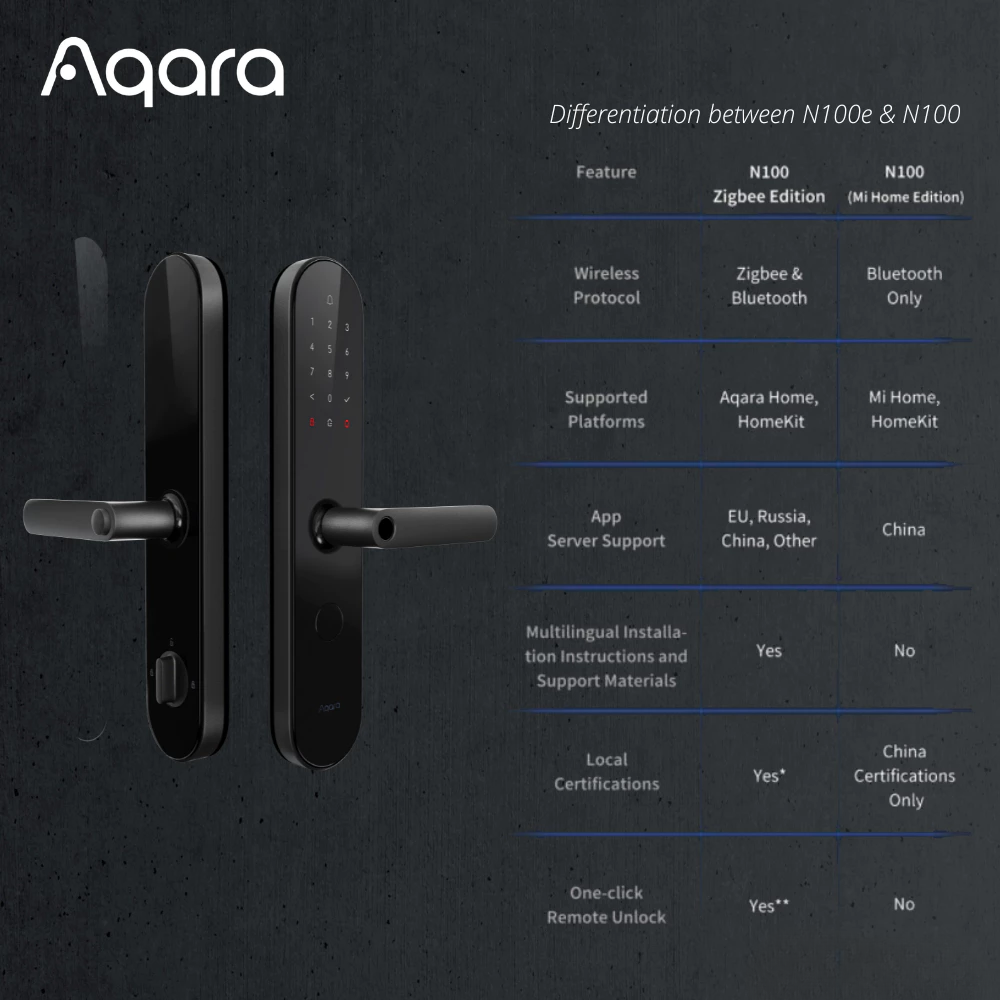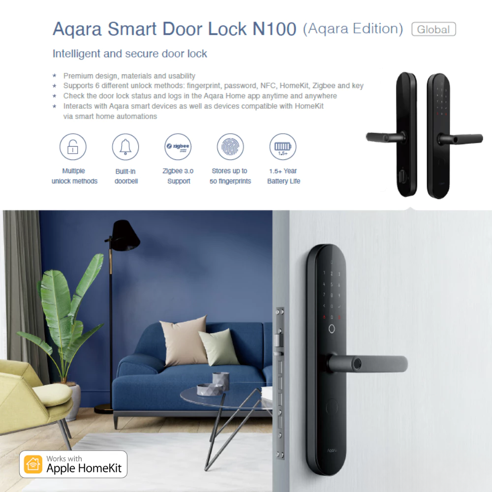 - App and voice control: Unlock remotely via the Aqara Home app or with voice commands via Apple HomeKit.