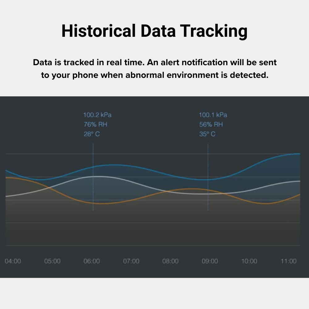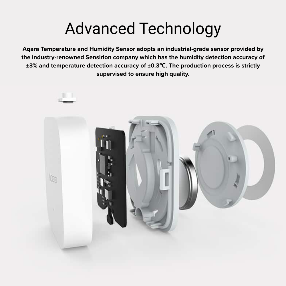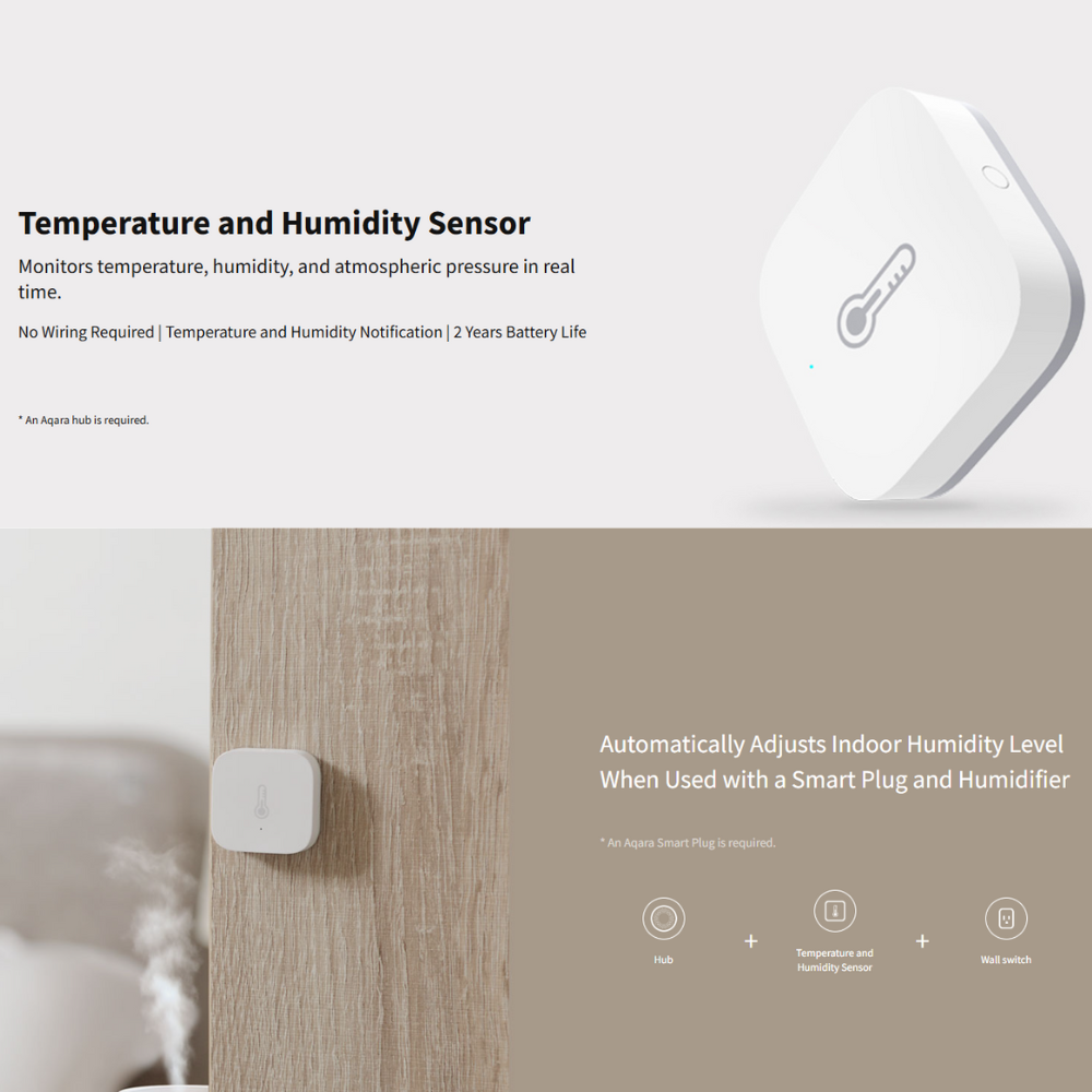 The Aqara Temperature and Humidity Sensor can monitor temperature, humidity, and atmospheric pressure. It can make environmental adjustments or send notifications to your phone via the Aqara Home app. When paired with other smart devices such as a gateway, remote control, smart outlet, or versatile controller, this sensor helps create a smart home ecosystem. It also allows you to easily track changes by viewing historical data records.
